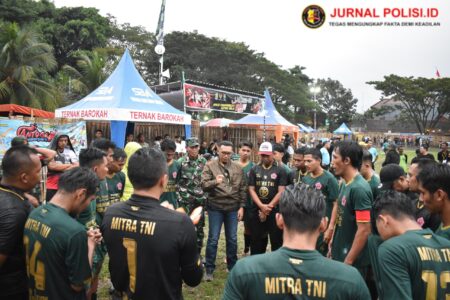 Komandan Kodim 0825 Banyuwangi Berikan Semangat Pertandingan Turnamen Bupati Cup pada Mitra TNI di Lapangan Maron Genteng