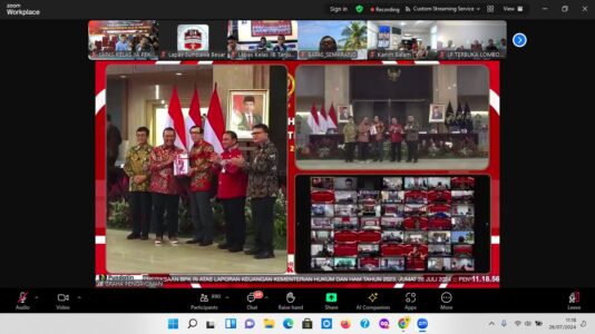 Lembaga Pemasyarakatan (Lapas) Kelas IIA Pekanbaru mengikuti kegiatan Penyerahan Laporan Hasil Pemeriksaan (LHP) Badan Pemeriksa Keuangan (BPK) RI atas Laporan Keuangan Kementerian Hukum dan Hak Asasi Manusia (Kemenkumham) Tahun Anggaran 2023 secara virtual, Jumat (26/07/2024).
