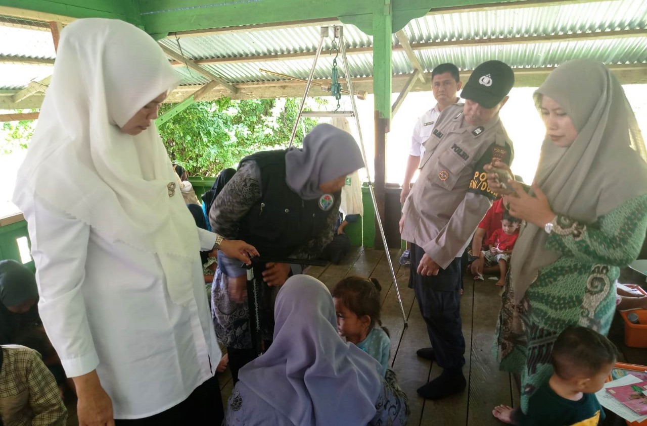 Peduli Stunting, Anggota Polsek Simpang Jernih Pantau Giat Posyandu