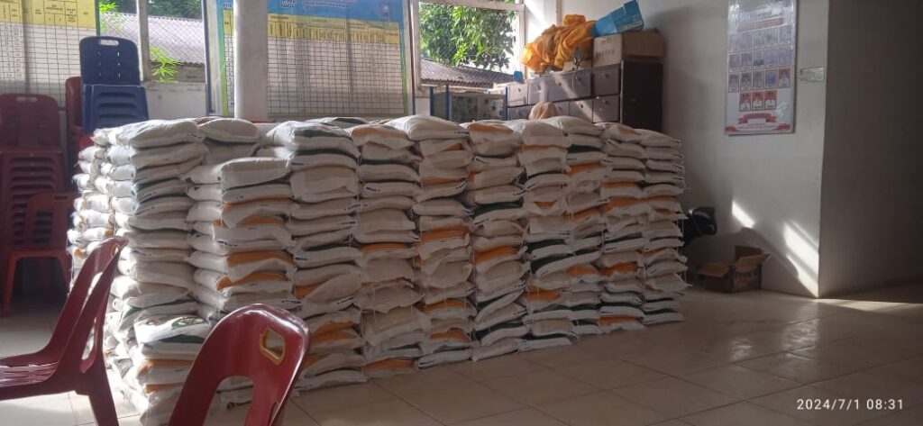 Sebanyak 589 karung beras bantuan pemerintah pusat disalurkan pemerintah Desa Kampung Dalam Kecamatan Bilah Hulu Kabupaten Labuhan Batu, Hari Senin (1/7/2024) di Aula kantor Kepdes Desa.