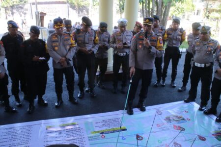 Mengakhiri sambutannya, Kapolres Nganjuk memberikan beberapa penekanan penting, antara lain meningkatkan kewaspadaan, mengutamakan keselamatan, dan melakukan upaya penegakan hukum secara tegas dan profesional.