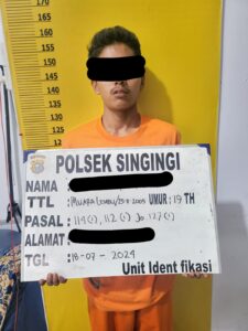 Kapolres Kuansing, AKBP Pangucap Priyo Soegito, S.I.K, M.H., melalui Kapolsek Singingi, AKP Linter Sihaloho, SH, MH, mengatakan, “Pasal yang disangkakan kepada tersangka AK (19) dijerat dengan Pasal 114 ayat (1) Jo Pasal 112 ayat (1) Jo Pasal 127 ayat (1) Undang-Undang Republik Indonesia Nomor 35 Tahun 2009 tentang Narkotika,” jelas Kapolsek.
