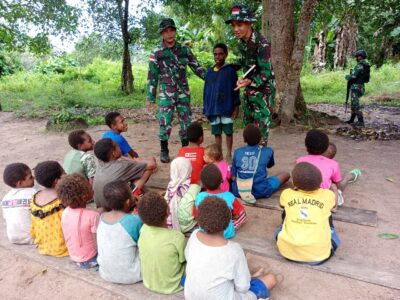 Prajurit Satgas Yonif 125/SMB Ajarkan Wawasan Kebangsaan Kepada Anak di Distrik Edera