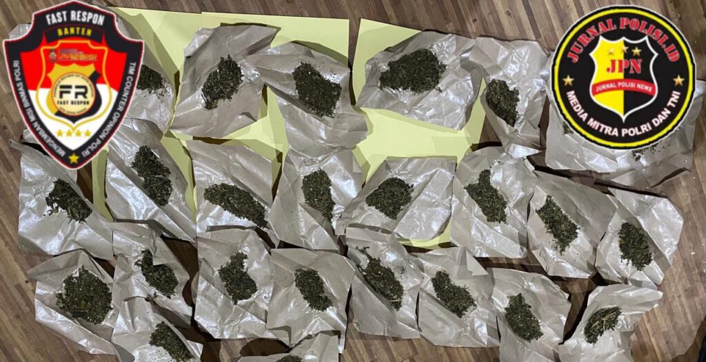 Dari tersangka warga Kecamatan Cikande, polisi mengamankan barang bukti 25 paket ganja siap edar yang disimpan dalam tas sepatu futsal.