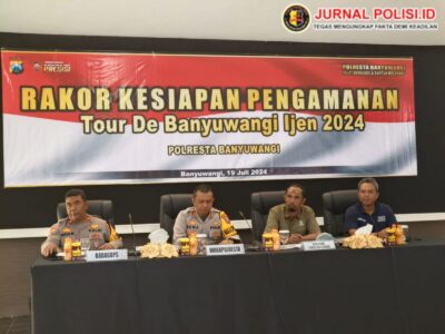 Kapolresta Banyuwangi Kombes Pol Nanang Haryono, S.H., S.I.K., M.Si yang diwakili Wakapolresta Banyuwangi AKBP Dewa Putu Eka Dharmawan membuka Acara Rakor pengamanan dan menyampaikan Agar Kegiatan balapan Sepeda Tour De Banyuwangi Ijen 2024 merupakan kegiatan yang sudah pernah dilaksanakan dan agar kesiapan segala aspek penyelenggaraan acara tersebut dapat berjalan dengan lancar. “Ujarnya