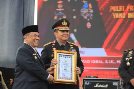 Serahkan Penghargaan di HUT Bhayangkara Ke-78, Pj Gubernur Riau: Mari Bersama Kita Dukung Polri