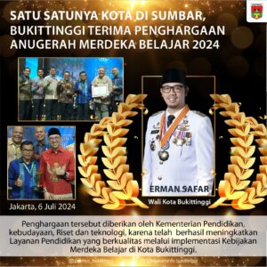 Wali Kota Bukittinggi, Erman Safar, melalui Sekda, Martias Wanto, mengaku bangga dan bersyukur, karena Bukittinggi menjadi nominator daerah terbaik dalam transformasi pembelajaran dalam Kebijakan Merdeka Belajar.