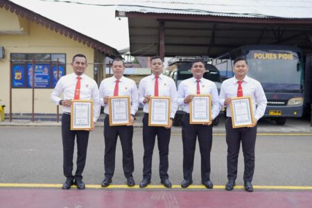 Penghargaan tersebut diserahkan Kapolres Pidie AKBP Jaka Mulyana, SIK, MIK dalam Apel Pagi di Lapangan Apel Mapolres Pidie, Selasa (27/08/2024).