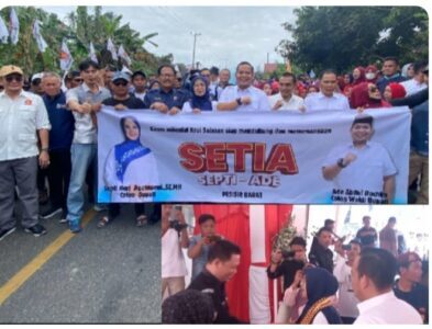 Terlihat semenjak dari keberangkatan kedua pasangan SETIA dari Pekon Gunung kemala sudah terasa konsentrasi ribuan masa pendukung yang akan mengiringi pasangan Septi-Ade untuk daftar di KPU sebagai calon Bupati dan Wakil Bupati Pesisir Barat yang di usung oleh dua partai besar diantaranya, partai Nasdem dan Partai Gerindra.
