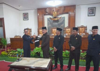 DPRD Tulungagung menggelar rapat paripurna dalam rangka Kesepakatan Bersama antara Kepala Daerah dan DPRD terhadap Rancangan Perubahan KUA-PPAS Tahun Anggaran 2024, pada Sabtu (3/8/2024). Kegiatan dilaksanakan di ruang Graha Wicaksana lantai dua kantor DPRD Tulungagung.