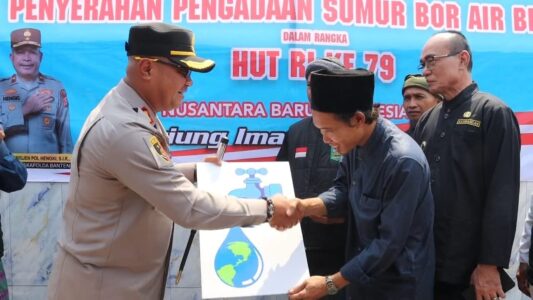 Program bhakti sosial ini dilaksanakan di Desa Lewilimus Kecamatan Cikande, Kabupaten Serang, Jumat 16 Agustus 2024. Selain pembangunan sumur bor dan fasilitas air bersih, Kapolres juga memberikan 80 paket sembako serta uang saku pada santri Ponpes At-Tadzib.