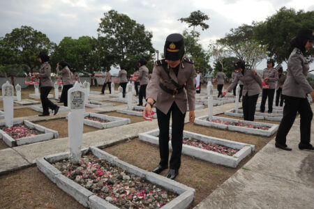 “Kegiatan yang kami lakukan adalah mendoakan arwah para pahlawan. Kegiatan ini dalam rangka mengisi rangkaian memeriahkan HUT Polwan ke 76,” jelas Iptu Sri Eningsih.