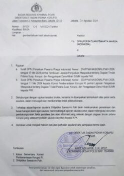 Dalam rangka menindak-lanjuti surat dari Direktorat Tindak Pidana Korupsi (Dittipikor) Mabes Polri Nomor: SP2D/54/VIII/2024/Tipikor, tanggal 20 Agustus 2024, bersama ini disampaikan bahwa Ketua Umum Persatuan Pewarta Warga Indonesia (Ketum PPWI), Wilson Lalengke, S.Pd, M.Sc, MA, akan mengunjungi Bareskrim Polri, pada: