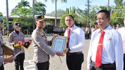Piagam penghargaan tersebut diberikan secara seremonial dalam upacara yang dilangsungkan di halaman apel Polres Nganjuk dan diikuti oleh Pejabat utama (PJU) dan anggota Polres Nganjuk, Senin (05/8/2024).