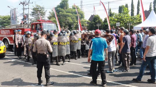 Polres Purbalingga menggelar latihan sistem pengamanan kota (Sispamkota) di Alun-alun Purbalingga Selasa – Rabu (20 -21 Agustus 2024). Latihan dilaksanakan sebagai wujud kesiapan menghadapi pengamanan Pilkada 2024.