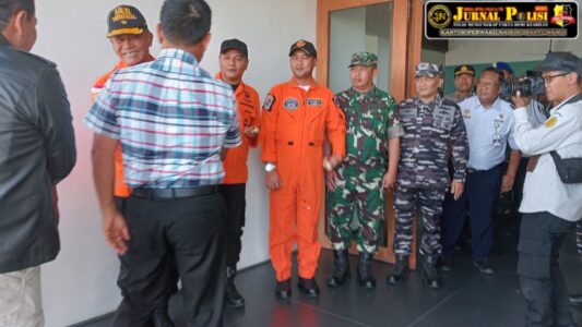 Letkol Sar M Hariyadi Kabasarnas Jatim, H Sugirah Wakil Bupati Banyuwangi, Mayor Kav Suprapto Kasdim 0825 Banyuwangi serta jajaran Forkopimda lainnya