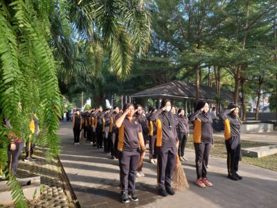 Salah satu kegiatan yang digelar Polwan Polresta Banyuwangi Polda Jatim dengan menggelar kerja Bhakti di TMP Wisma Raga Satria Banyuwangi, Selasa (20/8).