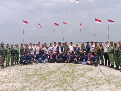 dan Mahasiswa/i STAIN Bengkalis dalam Rangka menyambut HUT RI ke-79 tahun 2024, Melaksanakan Pengibaran Bendera Merah Putih di Pulau Terluar Beting Aceh Desa Suka Damai, Kecamatan Rupat Utara, Kabupatan Bengkalis.