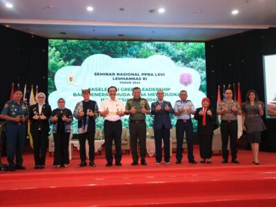 Seminar Nasional Lemhannas RI ini mengangkat tema “Akselerasi Transformasi Green Leadership bagi generasi muda guna mewujudkan Indonesia emas 2045” dan mengundang banyak narasumber Menparekraf Sandiaga Uno, Duta Besar Inggris untuk Indonesia dan Timor Leste Dominic Jermey, Wamen Pertanian Sudaryono, Deputi Bappenas Vivi Yulaswati, dan Wadir Sekolah Pasca Sarjana Unair Suparto Wijoyo.