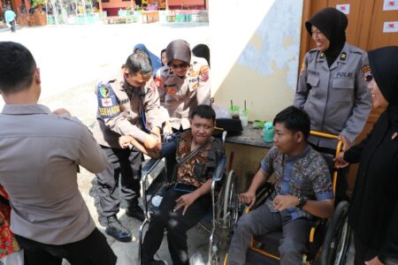 Pagi ini para polisi wanita (Polwan) Polres Kebumen menggelar kegiatan bakti kesehatan di Sekolah Luar Biasa SLB Negeri Tamanwinangun, Kamis 15 Agustus 2024.