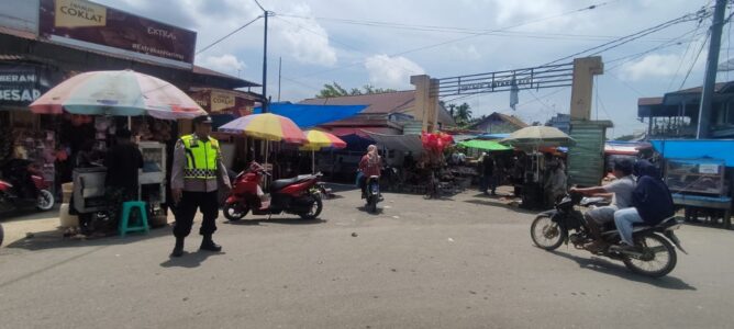 Personil Polsek Simpang Kiri Laksanakan Giat Strong Point Pagi Cegah Kecelakaan di Pasar Pekanan