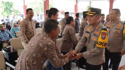 Kapolres Nganjuk, AKBP Siswantoro, S.I.K., M.H., didampingi Wakapolres Nganjuk, Pejabat Utama (PJU) dan Kapolsek Warujayeng menggelar Program Jum’at Curhat, di Pendopo Kecamatan Tanjunganom, Jum’at (2/8/2024).