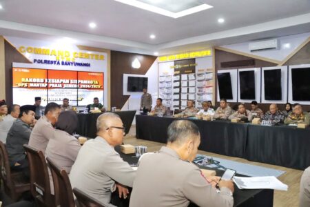 Salah satunya melaksanakan rakor Sispamkota di ruang Command Center Polresta Banyuwangi, Selasa (13/8/2024)