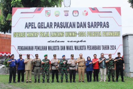 Polresta Pekanbaru menggelar Apel Gelar Pasukan dan Sarpras Operasi Mantap Praja Lancang Kuning 2024 pada Selasa, 27 Agustus 2024, di Lapangan Mall Pelayanan Publik Kota Pekanbaru, Jl. Jend. Sudirman, Kelurahan Jadirejo, Kecamatan Sukajadi, Kota Pekanbaru. Acara ini bertujuan mempersiapkan pengamanan Pemilihan Walikota dan Wakil Walikota Pekanbaru 2024.