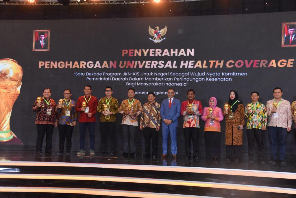 Piagam penghargaan tersebut diserahkan langsung oleh Wakil Presiden Republik Indonesian dalam acara tersebut yang mengusung tema “Satu Dekade Program JKN-KIS untuk Negeri sebagai Wujud nyata Komitmen Pemerintah Daerah dalam memberikan perlindungan kesehatan bagi masyarakat Indonesia”