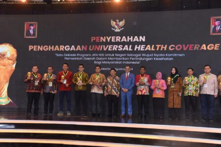 Piagam penghargaan tersebut diserahkan langsung oleh Wakil Presiden Republik Indonesian dalam acara tersebut yang mengusung tema “Satu Dekade Program JKN-KIS untuk Negeri sebagai Wujud nyata Komitmen Pemerintah Daerah dalam memberikan perlindungan kesehatan bagi masyarakat Indonesia”
