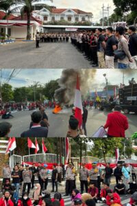 Ratusan Personil Polresta Banyuwangi diterjunkan dalam Pengamanan Aksi Unjuk Rasa Yang berlangsung Kondusif