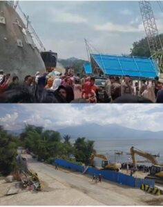 Ratusan Warga Desa Pulau Pandan Kec: Bukit Kerman Lakukan Aksi Unjuk Rasa di Pintu Air Danau, Antara Tanjung Batu dan Pulau Pandan