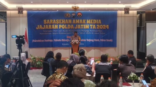 Humas Polda Jawa Timur menggelar acara Sarasehan Awak Media dengan tema “Sinergitas Polri dan Awak Media untuk Menjaga Kondusifitas Kamtibmas dalam Pelaksanaan Pilkada Tahun 2024 di Jawa Timur” pada Selasa, 27 Agustus 2024,di The Sun Hotel Sidoarjo.