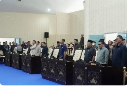 Rapat paripurna yang dihadiri 15 dari 25 anggota DPRD tersebut dipimpin langsung Ketua DPRD, Agus Cik, S.Pd., S.E., didampingi Wakil Ketua I DPRD, Ripzon Efendi.