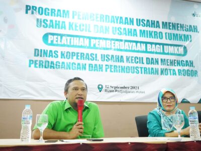 Anggota DPRD Kota Bogor dari Fraksi Aswaja, Akhmad Saeful Bakhri menjadi narasumber pada acara Pelatihan Pemberdayaan Bagi UMKM yang diselenggarakan oleh Dinas Koperasi, Usaha Kecil dan Menengah, Perdagangan dan Perindustrian (DinKopUKMDagin), Kamis (12/9/2024).