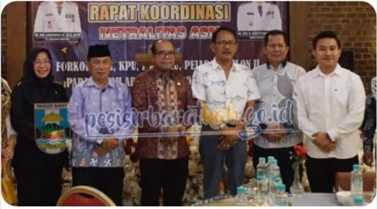 Bupati Pesisir Barat (Pesibar), Dr. Drs. Agus Istiqlal, S.H., M.H., menghadiri kegiatan Rapat Koordinasi (Rakor) Netralitas Aparatur Sipil Negara (ASN) bersama forkopimda, Komisi Pemilihan Umum (KPU), Badan Pengawas Pemilu (Bawaslu), Pejabat Eselon II, para Tokoh Adat dan Tokoh Masyarakat, di Aula Sartika Hotel dan Resort Pekon Seray Kecamatan Pesisir Tengah, Sabtu (31/8/2024) malam.