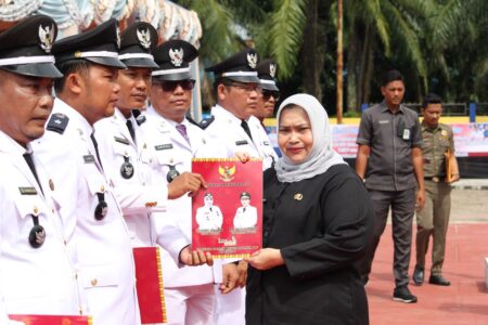 Bupati Bengkalis Kasmarni mengukuhkan perpanjangan masa jabatan Kepala Desa dan Anggota Badan Permusyawaratan Desa (BPD) Kecamatan Rupat dan Rupat Utara secara serentak, di halaman Kantor Camat Rupat Kamis 12 September 2024.