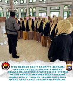 Kapolsek Tambang AKP Asril Syahputra diwakili oleh Kanit Samapta IPTU Bosman Tampubolon dan personil lainnya mengunjungi Pondok Pesantren Darul Qur’an di Desa Tarai Bangun dan melaksanakan Cooling System Pemilu Damai.
