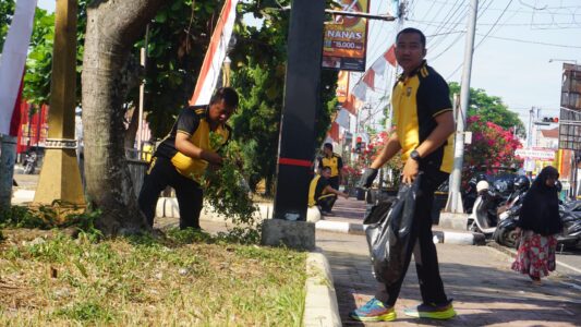 Kegiatan pembersihan sampah dilakukan usai pelaksanaan olahraga bersama santri. Seluruh sudut komplek Taman Usman Janatin Purbalingga tidak luput dari pembersihan oleh anggota Polres Purbalingga..