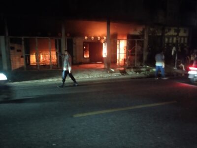 Kapolres Lhokseumawe AKBP Henki Ismanto, S.I.K melalui Kapolsek Syamtalira Bayu IPTU Sirya Iqbal memgatakan, kejadian tersebut terjadi sekitar pukul 22.22 WIB, ketika pemilik ruko, Asmawati (53), yang baru saja pulang dari pengajian, mendapati api sudah menyala di salah satu kamar ruko yang berada di belakang ruang tamu.