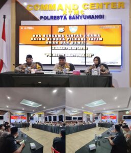 Dalam kegiatan tersebut Polresta Banyuwangi melibatkan Pejabat Utama (PJU) dan anggota Polresta Banyuwangi mengikuti di Command Center.