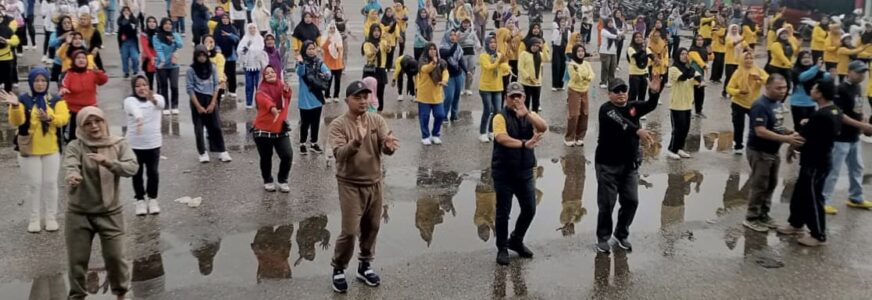 Meskipun Diguyur Hujan Ribuan Emak-Emak Ramaikan Senam Sehat Bersama Agus Nazar