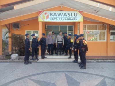 Satgas Tindak Sub Satgas SAR Satuan Brimob Polda Riau melaksanakan patroli ke Kantor Bawaslu kota Pekanbaru dalam rangka OMP LK-2024, Jum’at (13/9/2024).
