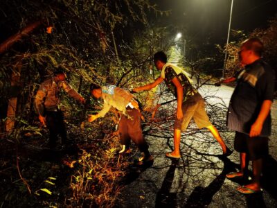 Polisi dan Warga Bersama Evakuasi Pohon Tumbang di Kecamatan Malo