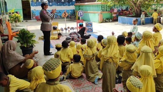 Unit Kamsel Satlantas Polres Lhokseumawe melaksanakan kegiatan Sosialisasi Tertib Lalu Lintas kepada anak usia dini melalui program “Polisi Sahabat Anak” TK Al-Jannah, Desa Batuphat Timur, Kecamatan Muara Satu, Kota Lhokseumawe, Selasa (10/9/2024) pagi.