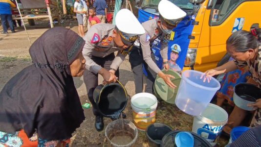 Kasat Lantas menambahkan total bantuan air bersih yang disalurkan sebanyak tiga mobil tangki atau 12 ribu liter. Sedangkan paket sayuran yang dibagikan ada puluhan paket.
