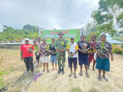 Tingkatkan Ekonomi Warga, Satgas Yonif 122/TS Berikan 250 Jenis Bibit Siap Tanam