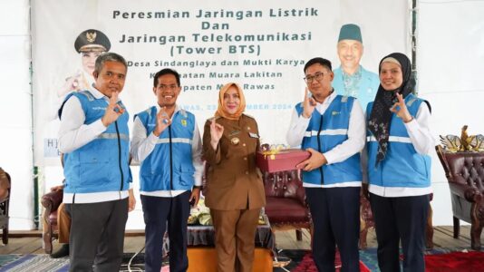 Bupati Musi Rawas Hj. Ratna Machmud Resmikan Jaringan Listrik dan Jaringan Telekomunikasi (Tower BTS) di Desa Sindang Laya dan Mukti Karya Kecamatan Muara Lakitan, Senin (23/09/2024).