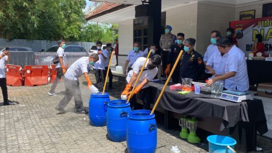 Direktorat Reserse Narkoba Polda Jawa Tengah memusnahkan barang bukti narkotika seberat 31,75 Kg dan 2.425 butir ekstasi . Barang bukti tersebut berasal dari 3 kasus berbeda yang melibatkan total 4 orang tersangka.