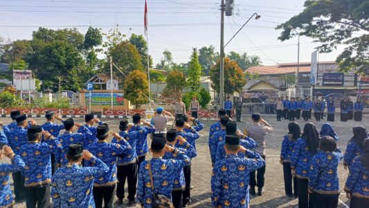 Polsek Kutasari dan jajaran TNI, ASN, serta pegawai kecamatan setempat melaksanakan Apel Gabungan Lintas Sektoral. Kegiatan digelar di halaman Kecamatan Kutasari, Kamis (17/10/2024) pagi.